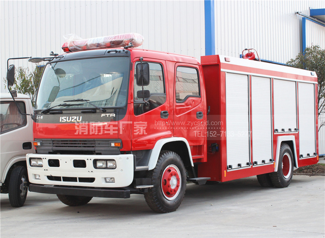 【五十鈴】FTR 6噸泡沫消防車,在五十鈴原裝二類底盤上改裝而成,載液量水4立方、泡沫2立方,配備常用消防器材,具有機動性好,操作方便,射程遠的特點,適用于專職隊、廠區、村鎮、工業園、港口、企業等場所。 |