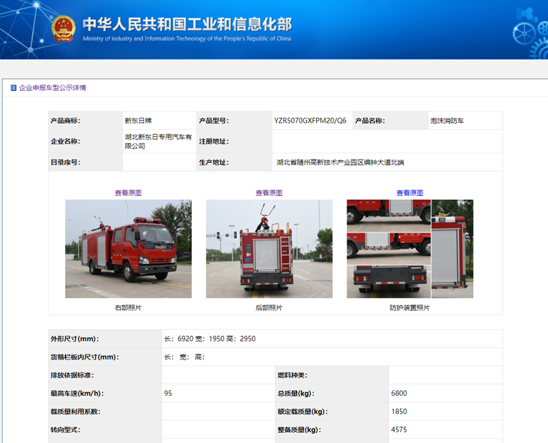 根據(jù)《道路機(jī)動(dòng)車輛生產(chǎn)企業(yè)及產(chǎn)品公告》(第335批)擬發(fā)布內(nèi)容和《享受車船稅減免優(yōu)惠的節(jié)約能源使用新能源汽車車型目錄》(第十八批)公示內(nèi)容中科院看到,湖北新東日消防車廠家:國(guó)六五十鈴2.5噸泡沫消防車已經(jīng)公示,正式公告即將下發(fā),有意購(gòu)買(mǎi)國(guó)六五十鈴2.5噸泡沫消防車的用戶可以購(gòu)買(mǎi)了。