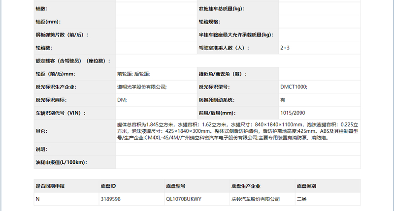 國(guó)六五十鈴2.5噸泡沫消防車參數(shù)表 |