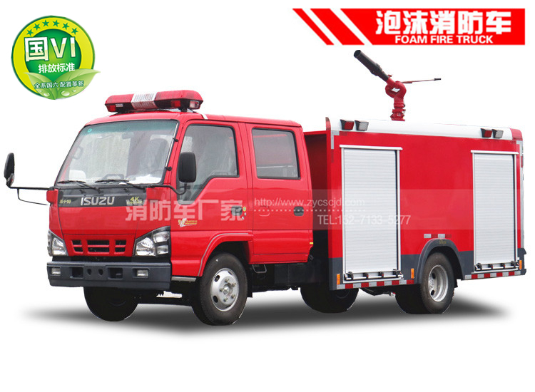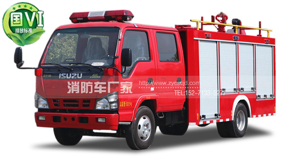 五十鈴88KW國五發動機,軸距:3815mm,配備CB10/20消防泵,PS20消防炮,水射程:≥50m。