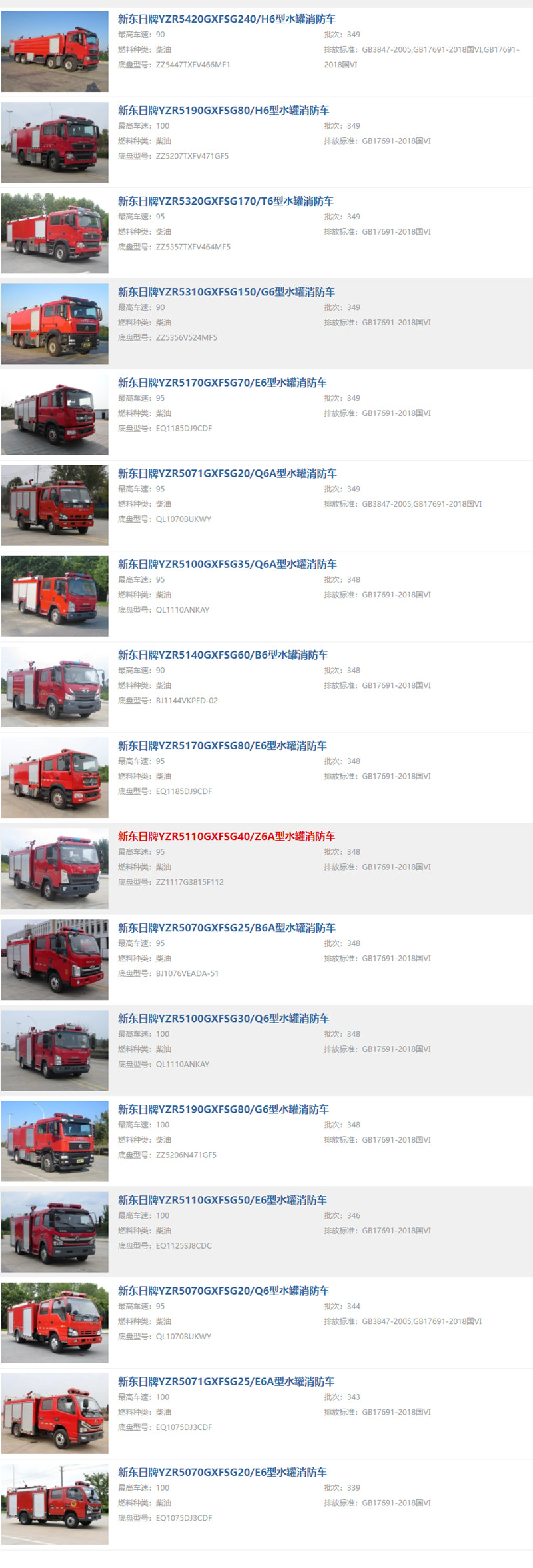 以上是所有17款水罐消防車公告,包含了車型的整車型號,最高車速,底盤型號,公告批次,更多水罐消防車詳細參數資料歡迎來電咨詢152-7133-5277.